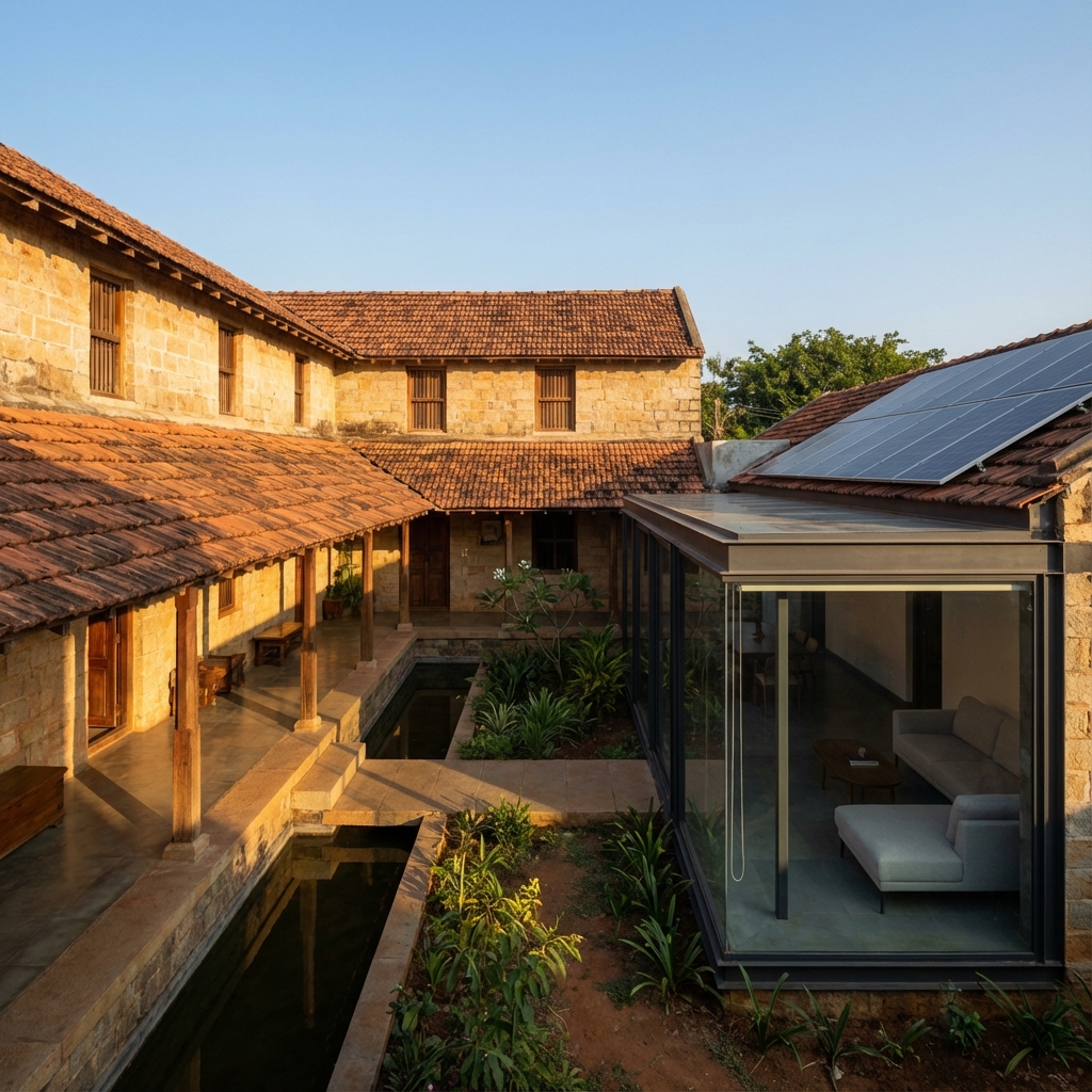 Our approach was 'minimum intervention, maximum impact'. We painstakingly restored the existing Athangudi tiles and teak columns, using traditional techniques to ensure authenticity.